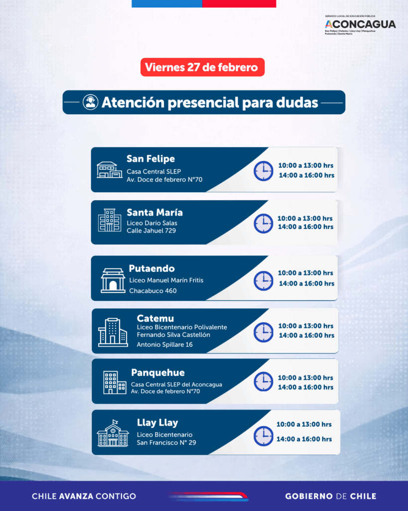 Finalmente, el Servicio Local de Educación Pública del Aconcagua reiteró su disposición a escuchar y atender todas las inquietudes que puedan surgir, reafirmando que la consolidación de estos procesos administrativos es parte fundamental del fortalecimiento de la Nueva Educación Pública en el Valle del Aconcagua.